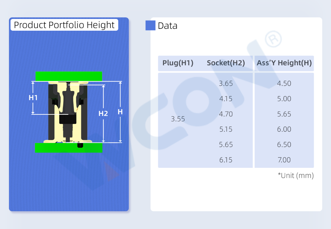 Wide range of mating heights: 4.50–7.00mm