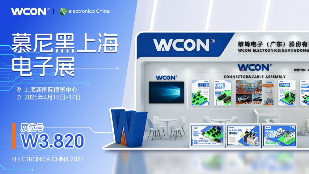 The Electronica China 2025 will be held from April 15 to 17, 2025, at the Shanghai New International Expo Centre. During this event, WCON Electronics ('WCON') will be located at booth W3.820, and we warmly invite industry partners to visit us.