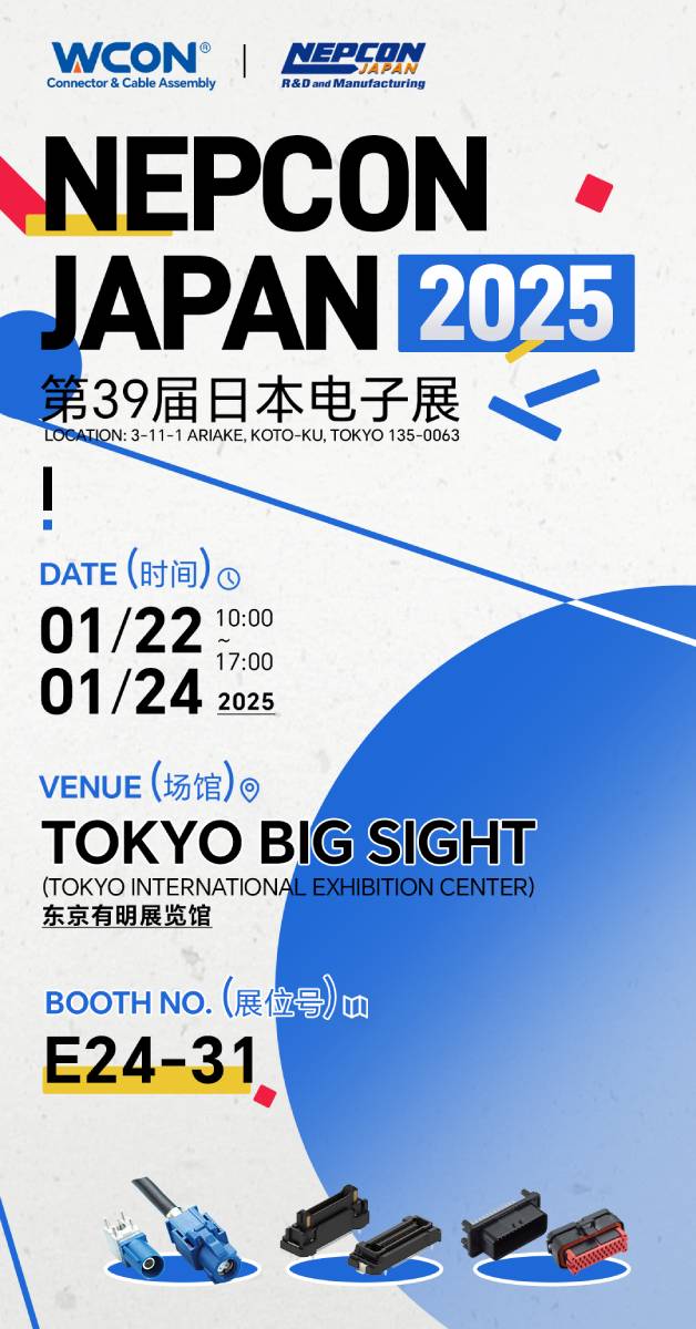 Nepcon Japan 2025 (39th Japan Electronics Technology Exhibition) will be held at the Ariake Exhibition Center in Tokyo, Japan from January 22 to 24. WCON is in Hall E, Booth E24-31!